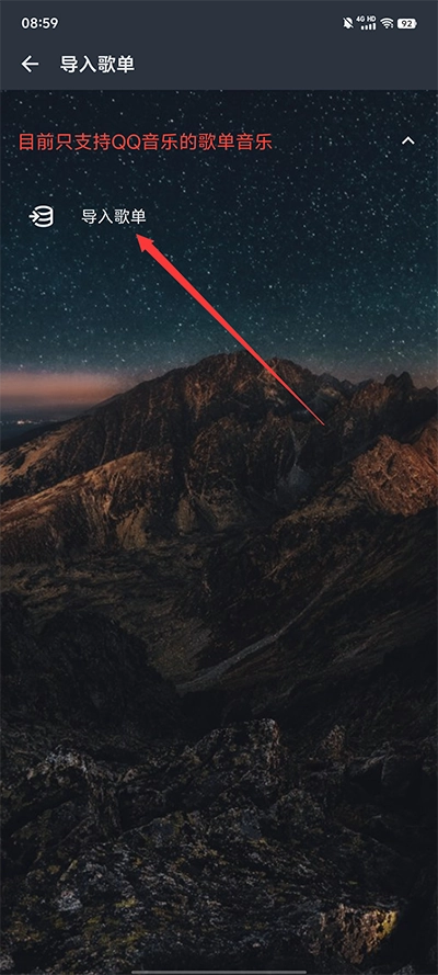 2、其次,点击“导入歌单”选项;