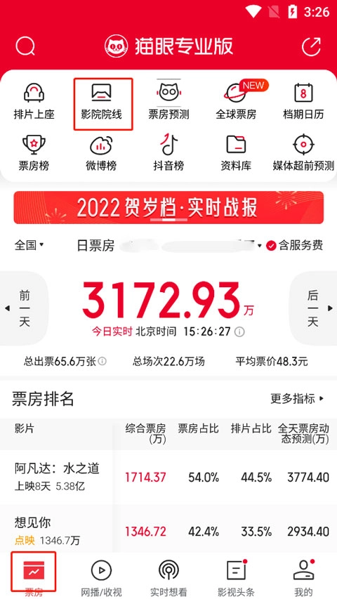 1、进入软件,在票房中,选择影院院线;