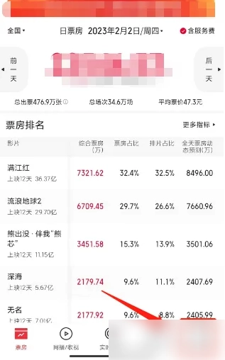 2、它为用户提供了综合影院票房排名,用户也可以按照票房从高到低、人次从高到低、上座率从高到低等维度进行排名;