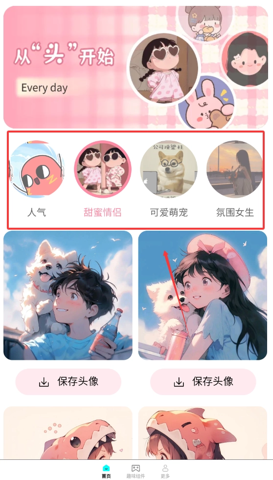 4、社交头像板块,准备了丰富多样的头像素材,用户可以挑选到可爱、清新、酷炫等不同风格的头像,便于在社交平台上展现个人特色。