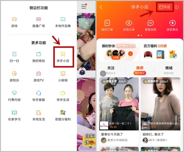 4.成功开通小店权限后,在卖家端找到“0元开通”按钮并点击,随后按要求填写开店的基础信息。