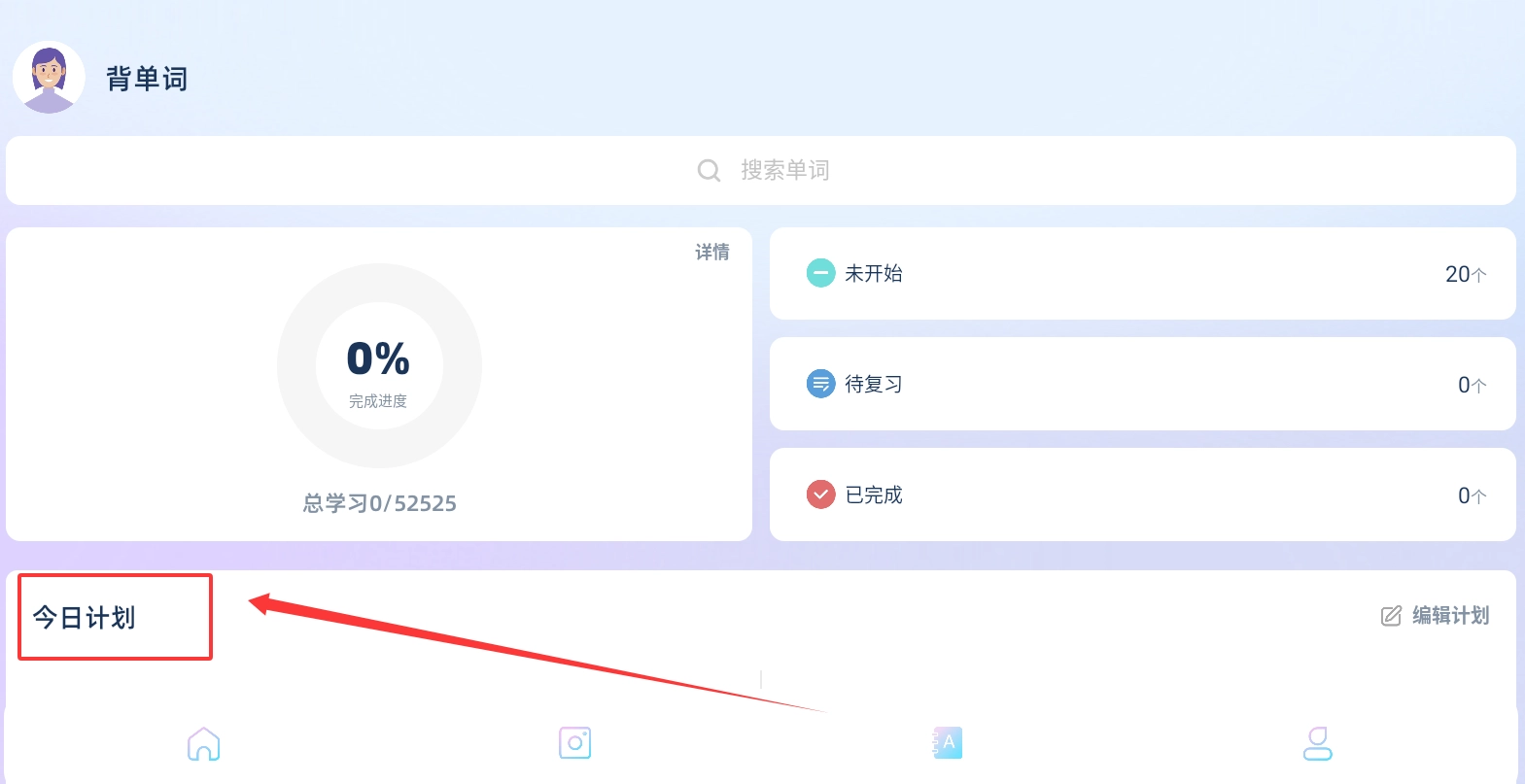 3、单词背诵计划支持自定义每日学习量,搭配测试与复习功能来巩固记忆,还能依据用户水平动态调整难度,以适配不同学习阶段的需求。