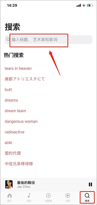 打开Musixmatch应用,点击界面上的「搜索」按钮,然后输入你想要查询的「歌曲名称、歌手名字或者歌词内容」。