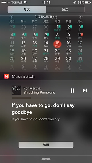 要是你确实不乐意把Musixmatch当成日常播放器来用,也能照旧使用系统自带的「音乐」应用,之后借助Musixmatch的通知中心小部件来显示歌词。