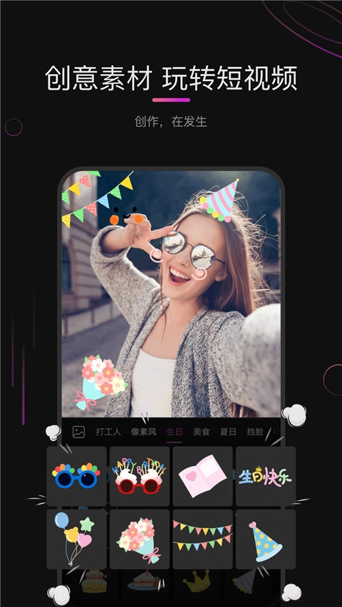 1、各类滤镜与视频特效均可直接应用,还有海量素材可供创意发挥,情侣合拍也能轻松定格氛围感满满的照片。