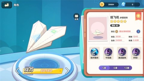 纸飞机具备额外20%的魔法免伤效果。每当它损失10%的生命值时,就会变形为手枪,发射出一枚巨大的五角星,该五角星能对飞行路径上的所有敌人造成70%的伤害并将其砸晕。