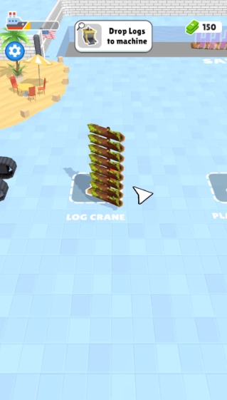 1、启动游戏后,前往箭头所指的位置,将已经加工完成的原木搬运过来。