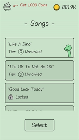 2、消耗金币为恐龙角色购买并解锁精美皮肤,选定后点击“Select”按钮,即可在游戏中展示该皮肤。