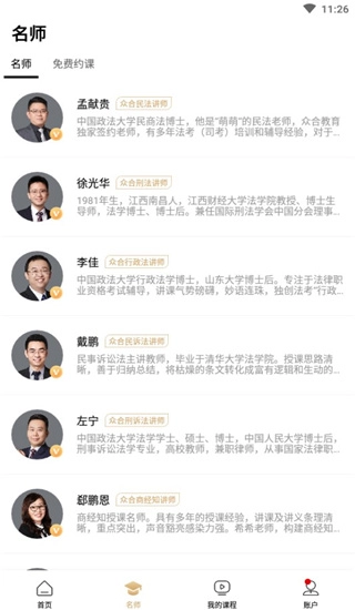 2、点击名师模块,可以查看当前热门名师信息;
