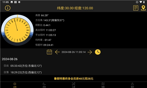 2.支持实时计算任意时刻太阳与月亮的位置,打开应用就能轻松查询,操作十分便捷。