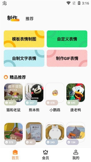 1、进入首页之后,可以看到详细的表情包制作以及推荐