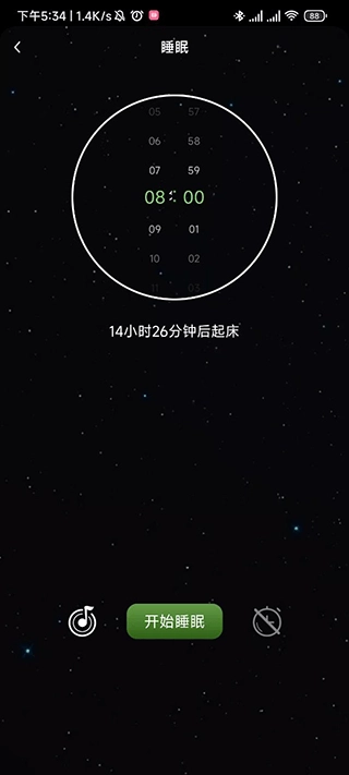 我以睡眠功能为例,进入界面后设置起床时间,接着可选择开启助眠音乐和闹钟,设置完成后点击“开始睡眠”按钮即可。