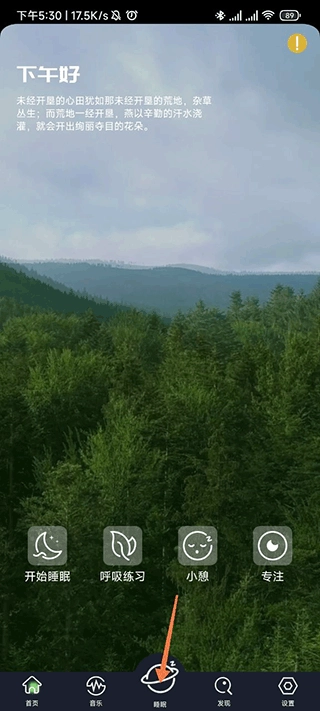 在睡眠界面能看到睡前仪式、闹钟、小憩和开始睡眠这些功能选项,大家可以依据自身需求选择进行睡眠或小憩。