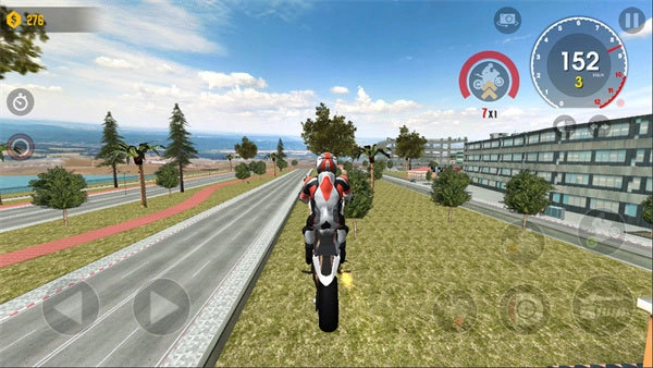 让摩托车走得更快,玩家需要依靠后轮来驱动,后轮驱动,抓地力更足。长按加速键,然后适当的向后倾斜即可。