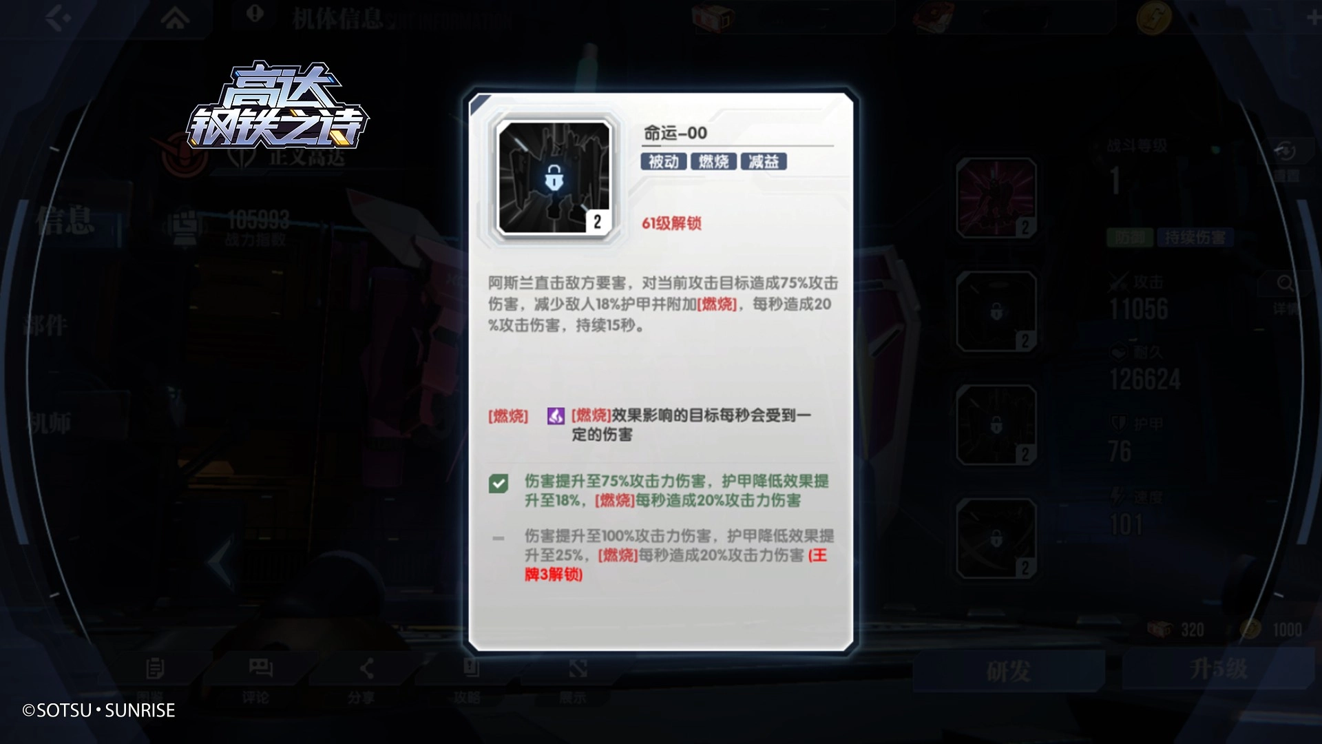 明确核心点后,搭配队友的方向便清晰了。初期可获得的正义高达,其主动技能【同时攻击】和被动技能【命运-00】能对敌人施加燃烧状态,与自由高达高度契合。