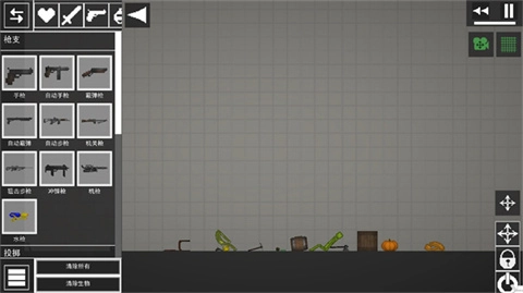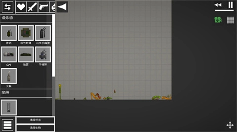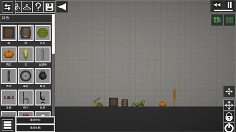 1、进入游戏后,界面如图所示,点击左上角的菜单按钮,在地面上添加两个物品。