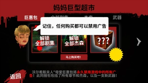 2、点击左上角的“禁用广告”或“妈妈巨型超市”选项,即可进入礼包购买页面。在此页面中,你不仅能获取各类丰厚礼包,还能解锁的使用权限。