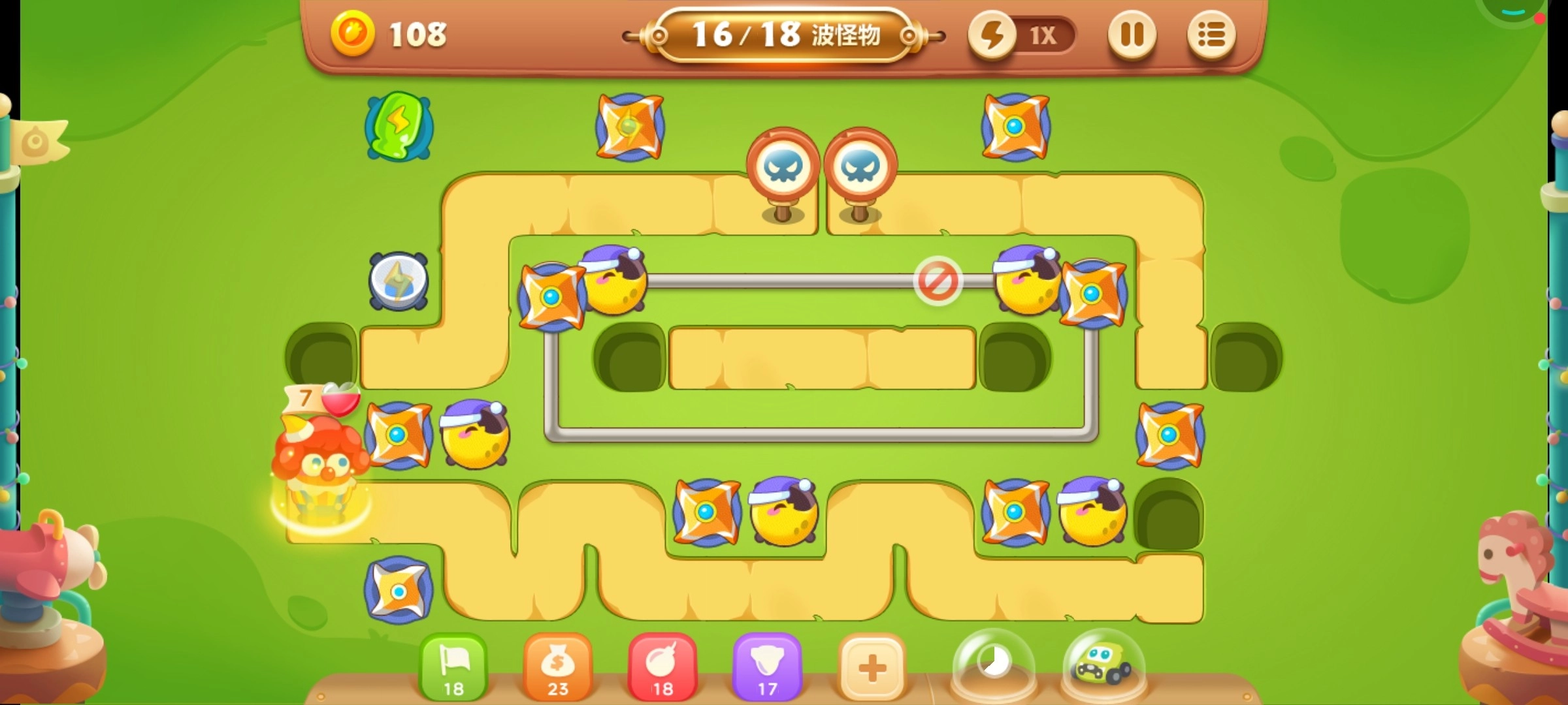 花样玩法,挑战升级,游戏加入了全新的滑道模式、好友互相PK的糖果赛玩法等诸多新奇玩法。是单独进行塔防战斗体验趣味的滑道模式,还是与好友比拼在糖果赛上初露头角,尽在玩家一念之间。