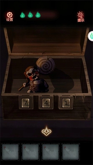 8、根据日记的线索,输入密码【741】,打开盒子,获得【娃娃】。(日记的线索:类似折纸,将下半部分往上折,得到密码【741】。)