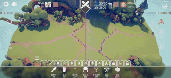 考虑到移动设备的性能以及联机时的网络环境状况,大规模战斗的画面流畅度与游戏运行表现,是我们在开发过程中需要重点解决的难题之一。在目前的开发版本里,我们并未像TABS NS版那样对兵种数量作出严格限制,同时还尝试保留了联机模式下的单兵控制功能。这些设定仍需经过大量的测试验证和优化调整,不过我们期望最终版本能够在确保联机稳定的基础上,尽量为联机玩家提供更为自由的对战体验。
