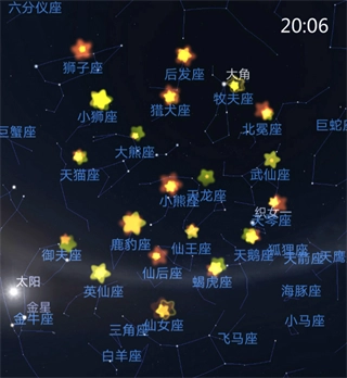 可收集的星座(6个):仙王座,小熊座,牧夫座,猎犬座,北冕座,天龙座。