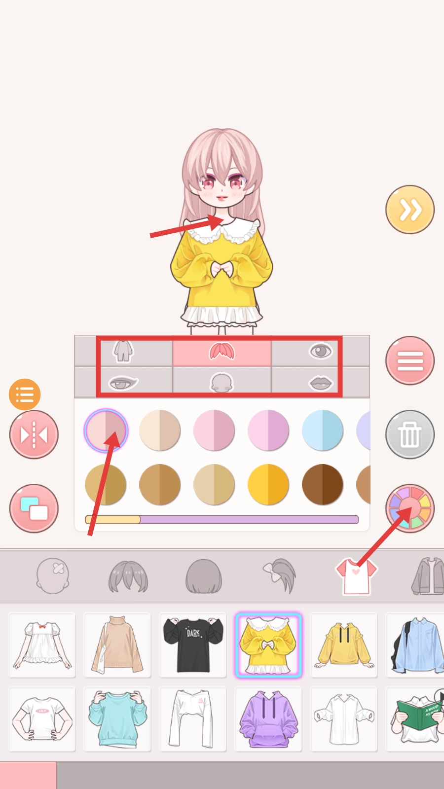 3、切换至服饰、发色等装扮选项,挑选心仪的服装,还可通过调色盘调整发色等细节,以此打造专属的独特形象。