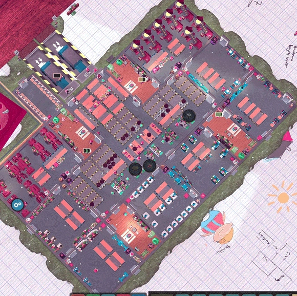 7:道路通畅至关重要,小人经过堆放货物的仓库区域时会大幅减速。因此,建议利用货架(即便货架未存放物品,其所在区域也不会导致减速,还能起到引导路径的作用,避免小人抄近道穿行仓库)和墙壁,引导小人避开仓库地面,选择更快捷的通道通行。