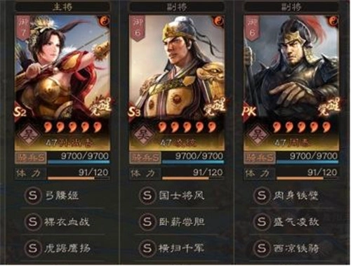 武将:副将凌统+周泰,主将孙尚香上限>太史慈>孙权>孙尚香下限