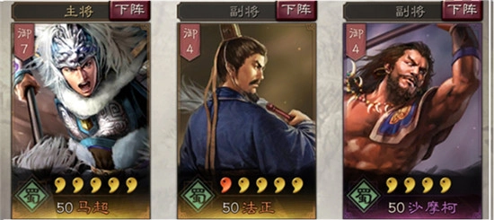 组合三个武将同是蜀阵营武将,可以获得额外的属性加成。组合中马超是核心输出,而沙摩柯可以起到控制和辅助作用,法正可以补充组合防守不足的问题,治疗和规避都可以加强组合的防御性能。组合可以起到一种攻守均衡的作用,注意马超一定要配备全输出突击战法,并且沙摩柯的可以加点速度让其比马超先手。