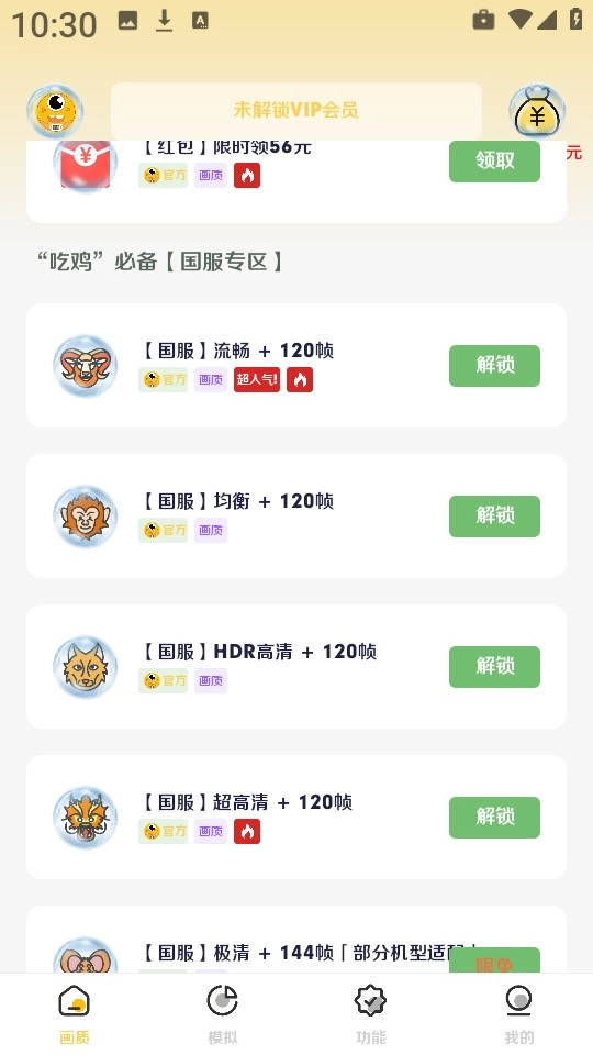在首页能够看到不同帧数对应的游戏画质选项,具体可参考图示内容。