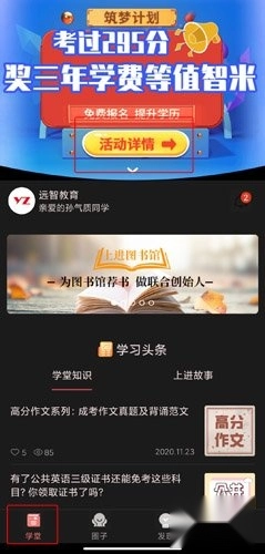 1、登录学堂平台,进入奖学金专区浏览最新活动通知,点击“详情”查看具体信息。