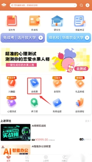 1、成功登录远智教育平台后,在首页的导航栏中找到并点击“在线练习”的功能入口,即可进入智能题库系统。