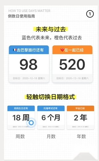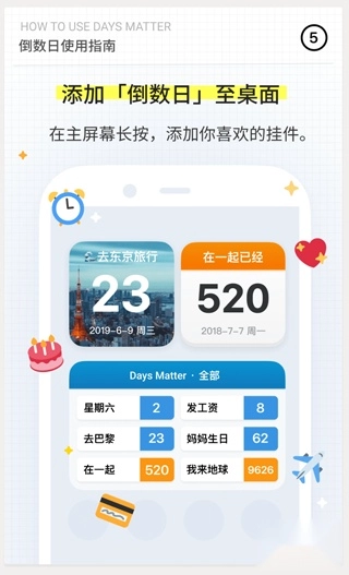 1、在这里能够对生日、周年纪念日、工作日等已知的重要日子进行倒数。