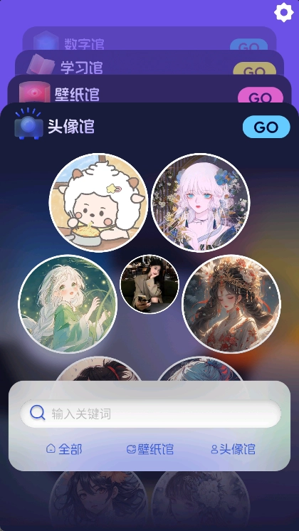 1、在全部页面中可以了解数字馆、学习馆、壁纸馆以及头像馆的所有内容;
